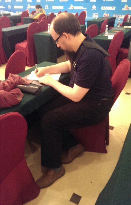 Habe mir jetzt auch einen Logenplatz ermogelt. Nur der Rücken der Rätsler kann mir jetzt im Weg sein. Ich verabschiede mich jetzt bis zum Finale, kann aber noch sagen, dass das Pentominorätsel einfach ein Platzieren der Pentos ohne Berührung ist.