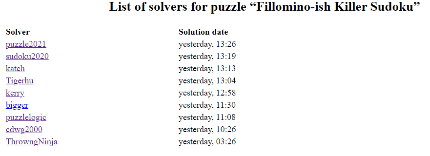 With respect to the consultation to the "author" we have deleted some multiple accounts (Solutions, ratings and comments). In fact, the accounts were 'sudoku2020', 'Tigerhu', 'puzzle2021', 'puzzlelogic', 'kerry' and 'katch'. The author apologized, said sorry and promise to stop immediately his "absurd behavior".