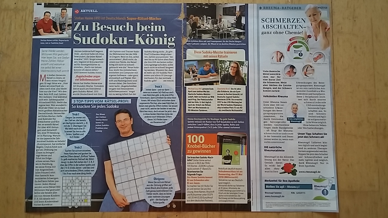 Hier im Anhang der Artikel aus Bild der Frau, der auch auf der Titelseite der Ausgabe erwähnt wurde. Auch nach meiner Nachfrage sind die vereinbarten Belegexemplare bei mir leider (noch) nicht angekommen. In schärfer krieg ich's grad nur in zum Hochladen zu hoher Auflösung hin.
