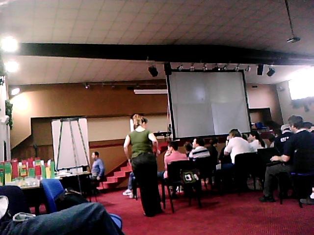 Die große Gruppe, die sich vor dem Schirm aufgebaut hat (und wodurch ich zwischen dem Tippen mit dem Laptop auf dem Schoß immer aufstehen musste) hat sich soeben aufgelöst ^^