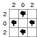 Hat dieses Rätsel eine oder zwei Lösungen? Die Antwort hängt davon ab, ob man nur das Rätselgitter betrachtet (das ist eindeutig, wie auch beim Worttapa), oder auch die (implizite) Zuordnung der Zelte zu den Bäumen (da gibt es zwei Lösungen, nämlich einmal die Zuordnung im Uhrzeigersinn und einmal andersrum).