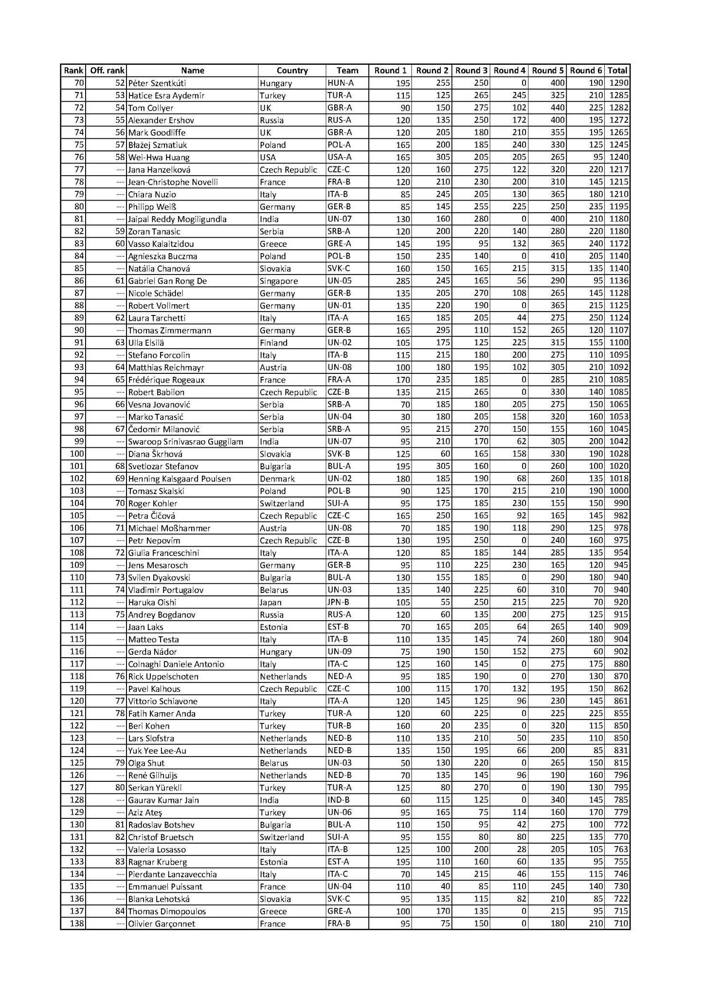 Teamplatzierungen: GER-A auf 6 und GER-B auf 27 (von 47, glaube ich)